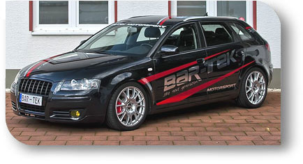 Im Jahr 2013 bekam die BAR-TEK Flotte erneut Zuwachs: Neuestes Mitglied im Fuhrpark ist ein Audi A3 Sportback quattro (8PA) 2.0 TFSI (AXX) mit 200PS. Der gleiche Motor wurde von 2004 bis 2008 auch im Golf 5 GTI eingesetzt.